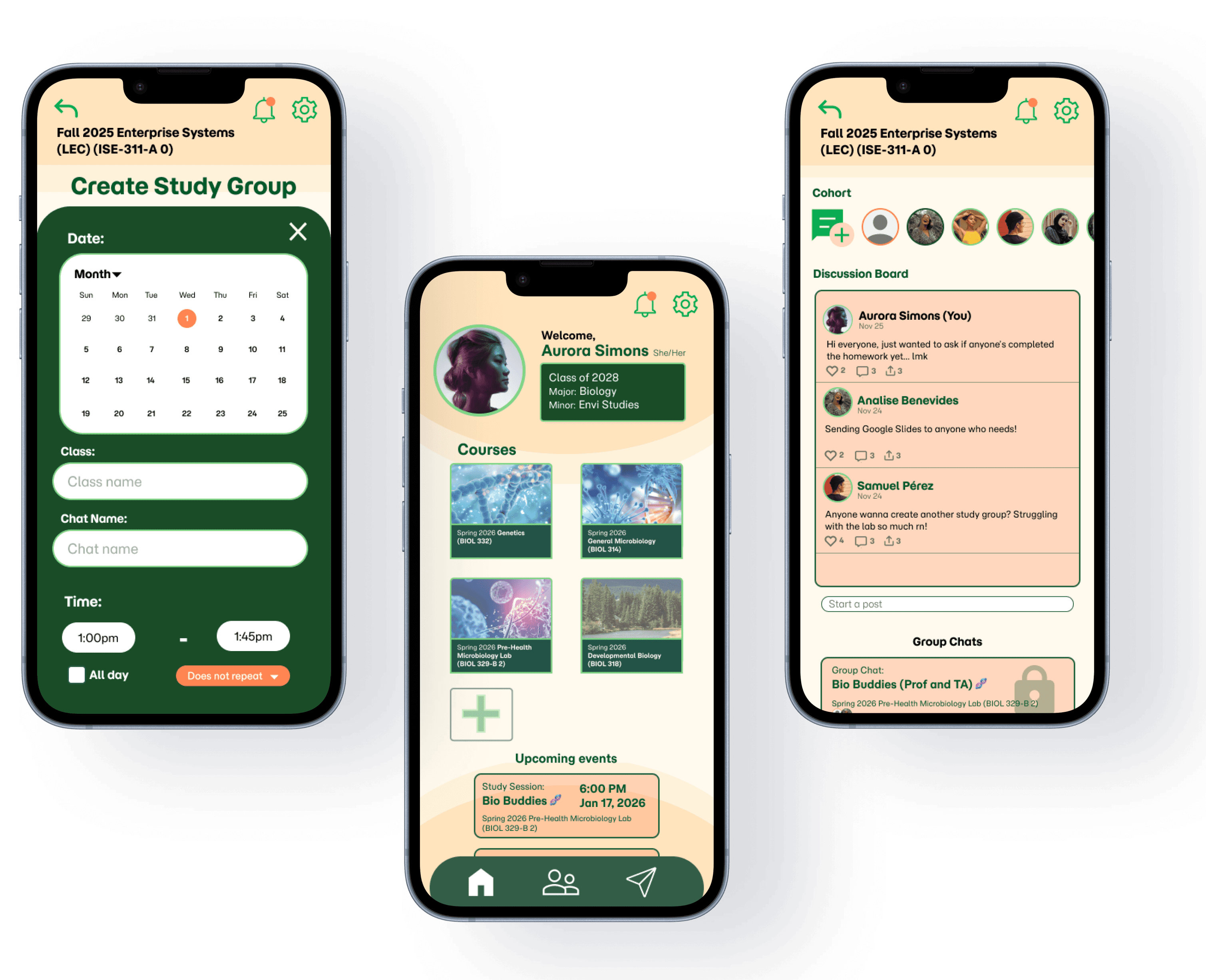 To develop and launch a mobile application with an algorithm designed to provide Binghamton students a network of users within the same major, classes, with features such as a list of Binghamton-specific classes and class sections and their designated faculty and creating study groups.